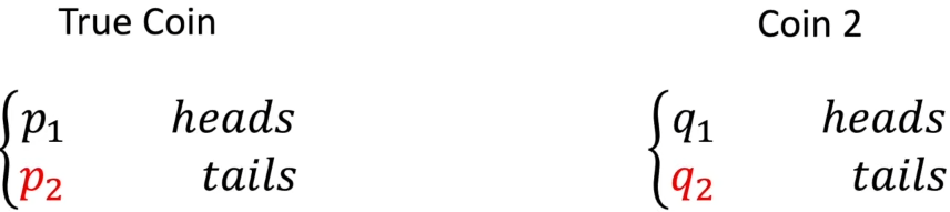 True Coin의 분포가 P 분포이고 Coin2의 분포가 Q 분포이다.