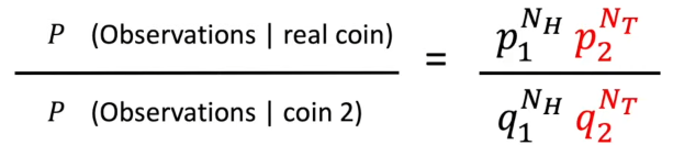 1) True Coin일 경우 우리가 얻은 결과가 나올 확률, 2) Coin2일 경우 우리가 얻은 결과가 나올 확률