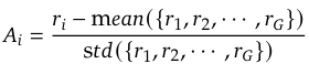 모델이 G개의 샘플을 샘플링하고 각 샘플의 reward를 기반으로 advantage A를 계산한다.