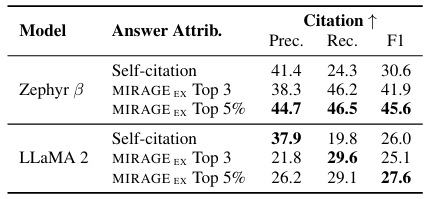 - Self-Citation은 프롬프트를 통해 모델이 생성한 응답에 대한 출처를 명시하도록 하나, 모델이 프롬프트에 있는 instruction을 완전히 따르지는 못함