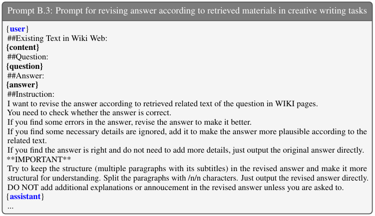 - 사용자 질의 x, 초기 답변 y_raw, 관련 문서 V_k를 LLM에 입력하여 개선된 답변 y_reflection 생성