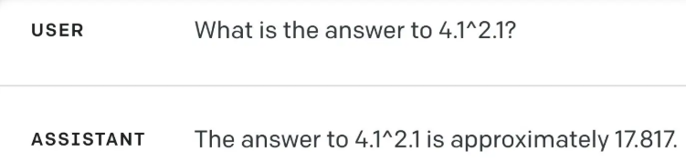 예: GPT-4에게 4.1 * 7.9의 답을 묻자 제대로 대답하지 못한 사례가 있습니다.