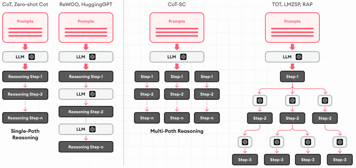 예를 들어, ReAct는 에이전트가 사고(Thought), 행동(Action), 관찰(Observation)을 반복하는 방식으로 복잡한 문제를 해결할 수 있게 도와줍니다. 이 과정에서 에이전트는 환경으로부터의 피드백—즉, 인간이나 다른 모델의 입력, 또는 외부 환경의 반응—을 받아들이고, 실시간으로 접근 방식을 조정할 수 있습니다. 이러한 방식은 에이전트가 질문에 보다 정교하고 효과적으로 응답할 수 있도록 만듭니다.