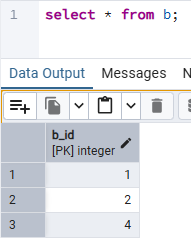 a와 b테이블은 각각 아이디만을 속성으로 가지고 있다.
