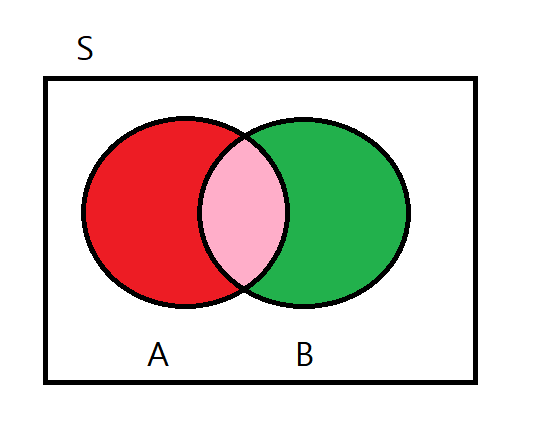 위 그림에서 P(A)는 전체 네모(S라는 표본공간)에서의 A(빨간색 + 분홍색)의 비율 정도로 말할 수 있다.