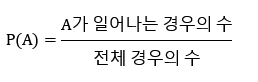 일반적으로 A가 일어나는 확률을 수식으로 나타내면 다음과 같다.