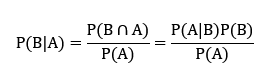베이즈 정리는 위의 조건부 확률을 조금 응용한 것으로, 아래의 식을 활용한다.